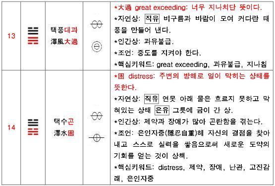 기존 괘상의 설명 중에 '자연상'이 일관되게 설명되지 않은 부분이 많아 아쉬웠다.