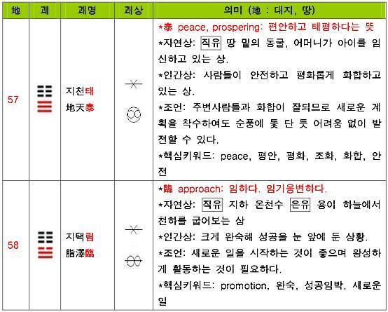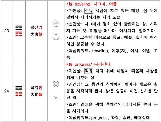 한편 64괘에 대해 정리된 책들과 자료들을 보면,