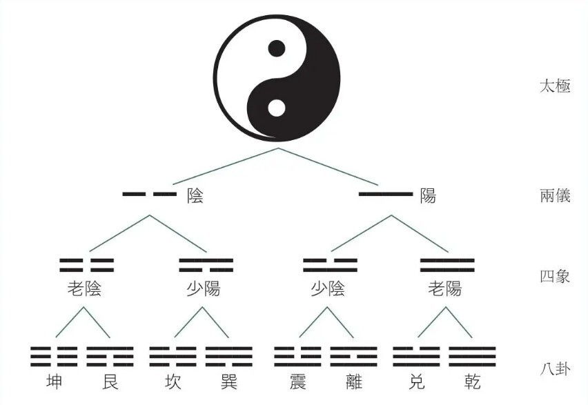 太極>兩儀> 四象>八卦