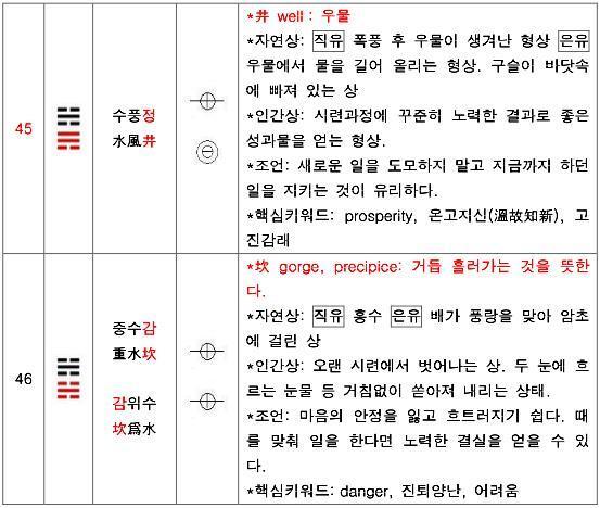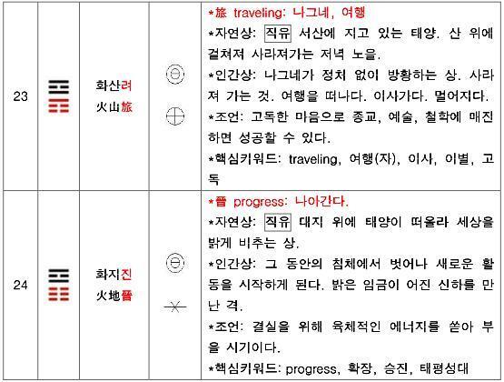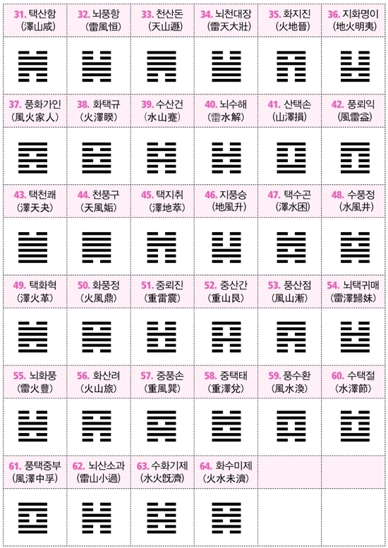한편 64괘에 대해 정리된 책들과 자료들을 보면,