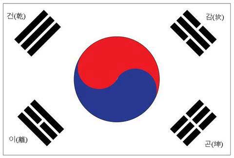 우리나라 국기(國旗)인 태극기(太極旗)는 흰색 바탕에 가운데 태극문양과 네모서리의 건곤감리(乾坤坎離) 4괘(四卦)로 구성되어 있습니다.
