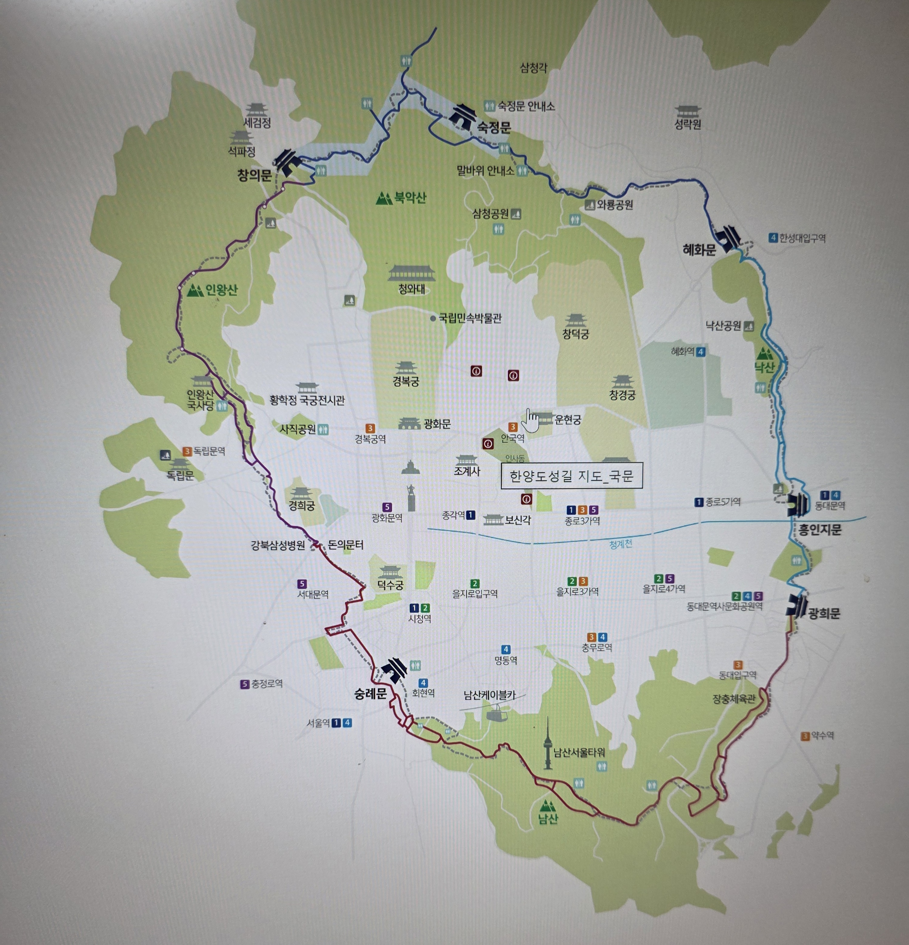 *점심시간 후의 돈의문까지의 시내코스는 결석함. 아래 사진은 인왕산 코스 때 찍음./ 돈의문은 일제가 이전도 않고 해체해 버림.