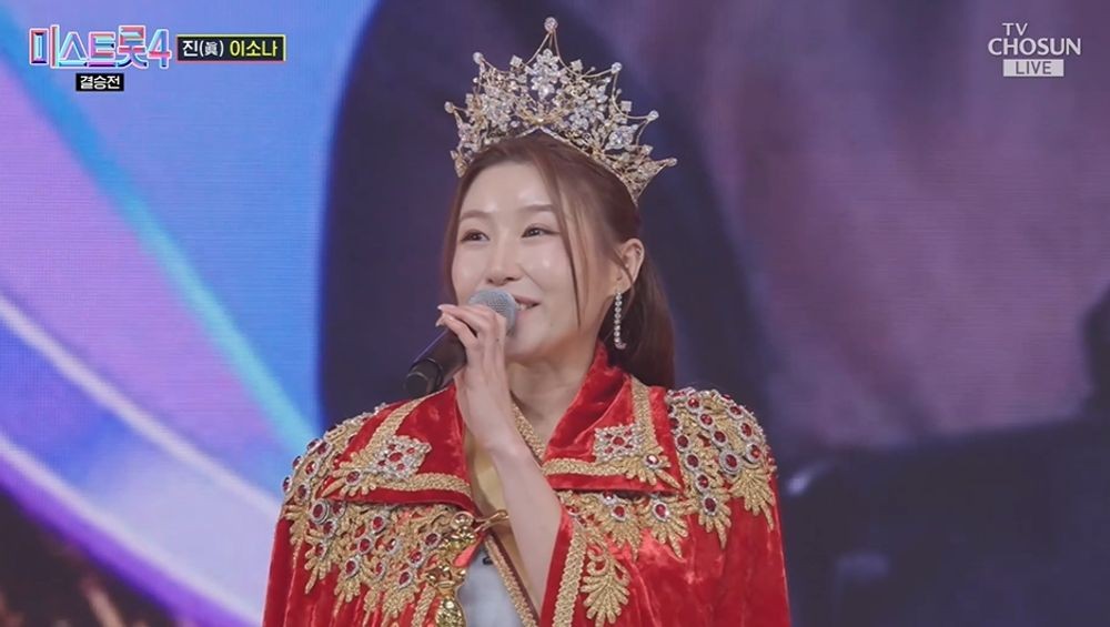 TV조선 \'미스트롯4\'가 대망의 결승전을 치른다.4번째 왕관의 주인공이 누가 될지 관심이 집중되는 가운데, 가수 이소나가 강력한 우승 후보로 거론되고 있다.이소나는 이번 시즌 첫 무대부터 시