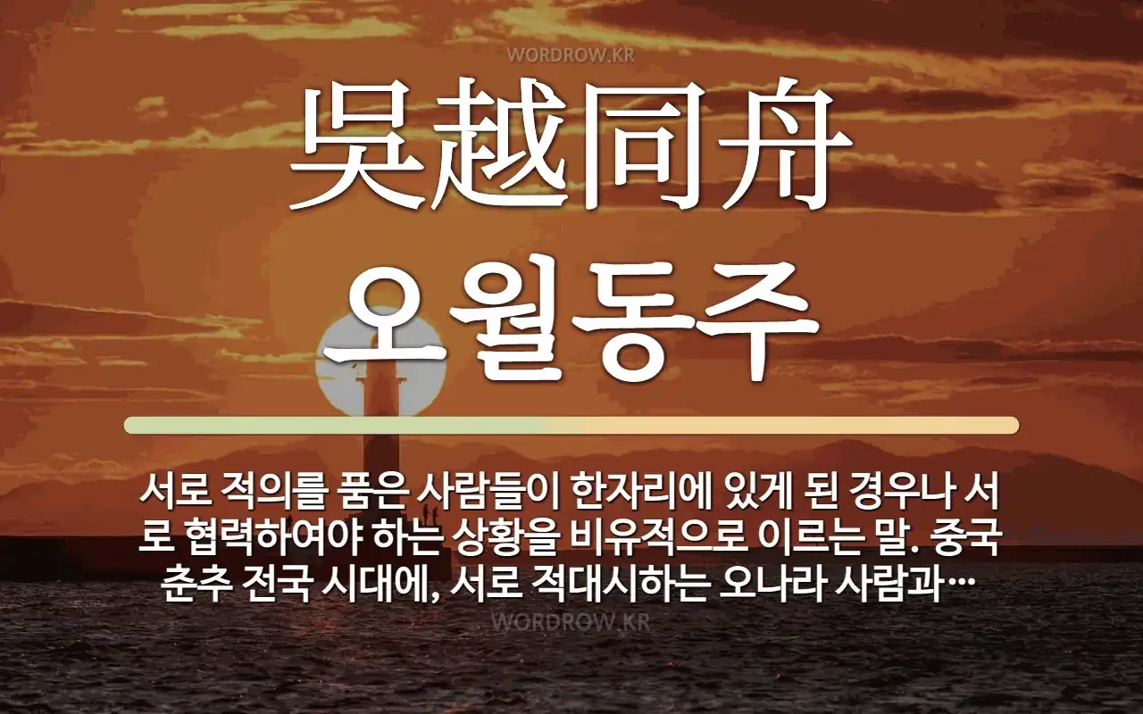 - 유래: 중국 춘추전국시대 원수 관계였던 오나라와 월나라 사람이 같은 배를 타고 가다 풍랑을 만나자, 서로 돕게 된다는 뜻에서 유래.